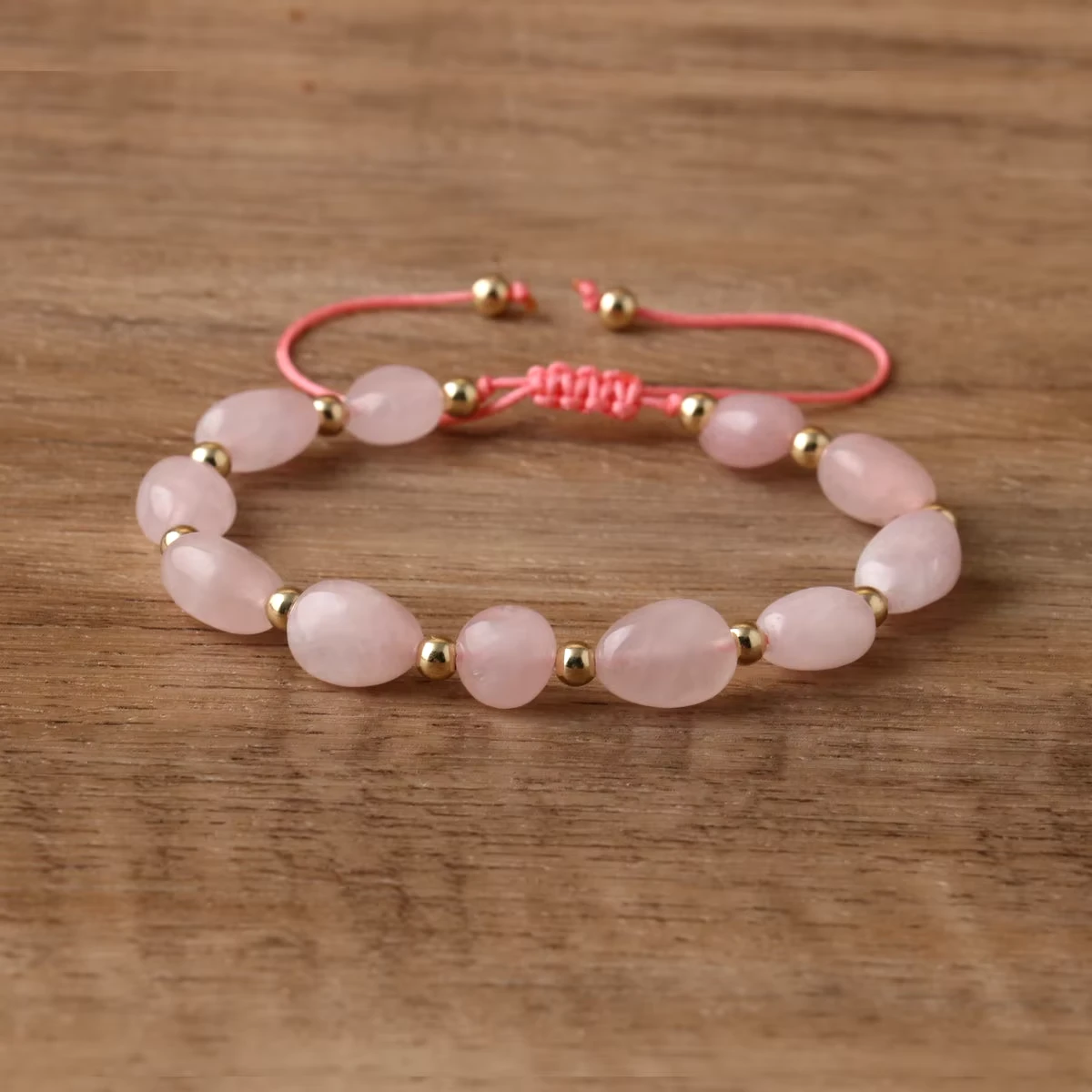 Uspokaja i pociesza: Przypisuje mu się właściwości uspokajające, pomaga w łagodzeniu stresu i niepokoju. Uważa się, że noszenie różowego kwarcu wycisza emocje i przynosi spokój.