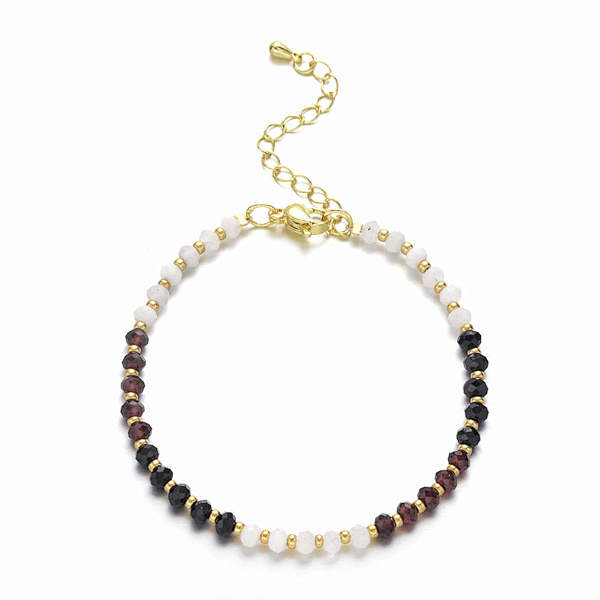 Bransoletka „Ochrona i Intuicja” łączy siłę ochronnego czarnego turmalinu, subtelną energię kamienia księżycowego i pasję granatu. To wyjątkowy talizman, który chroni przed negatywną energią, wzmacnia intuicję i dodaje odwagi do działania.