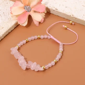 Uspokaja i pociesza: Przypisuje mu się właściwości uspokajające, pomaga w łagodzeniu stresu i niepokoju. Uważa się, że noszenie różowego kwarcu wycisza emocje i przynosi spokój.
