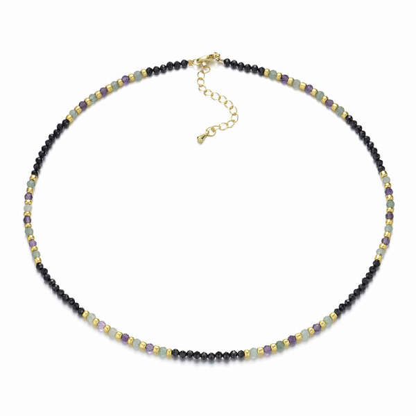 Energia Spokoju i Szczęścia to naszyjnik łączący ochronny czarny turmalin, kojący ametyst i pełen pozytywnej energii zielony awenturyn. Harmonijne połączenie kamieni, które wspiera spokój, równowagę i przyciąga dobre wydarzenia każdego dnia. Idealny jako talizman na co dzień lub wyjątkowy prezent.