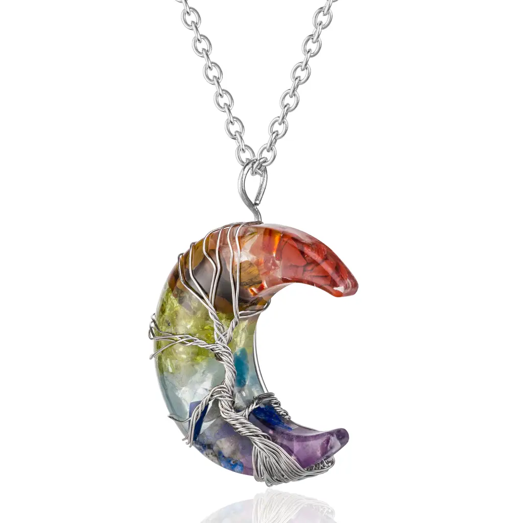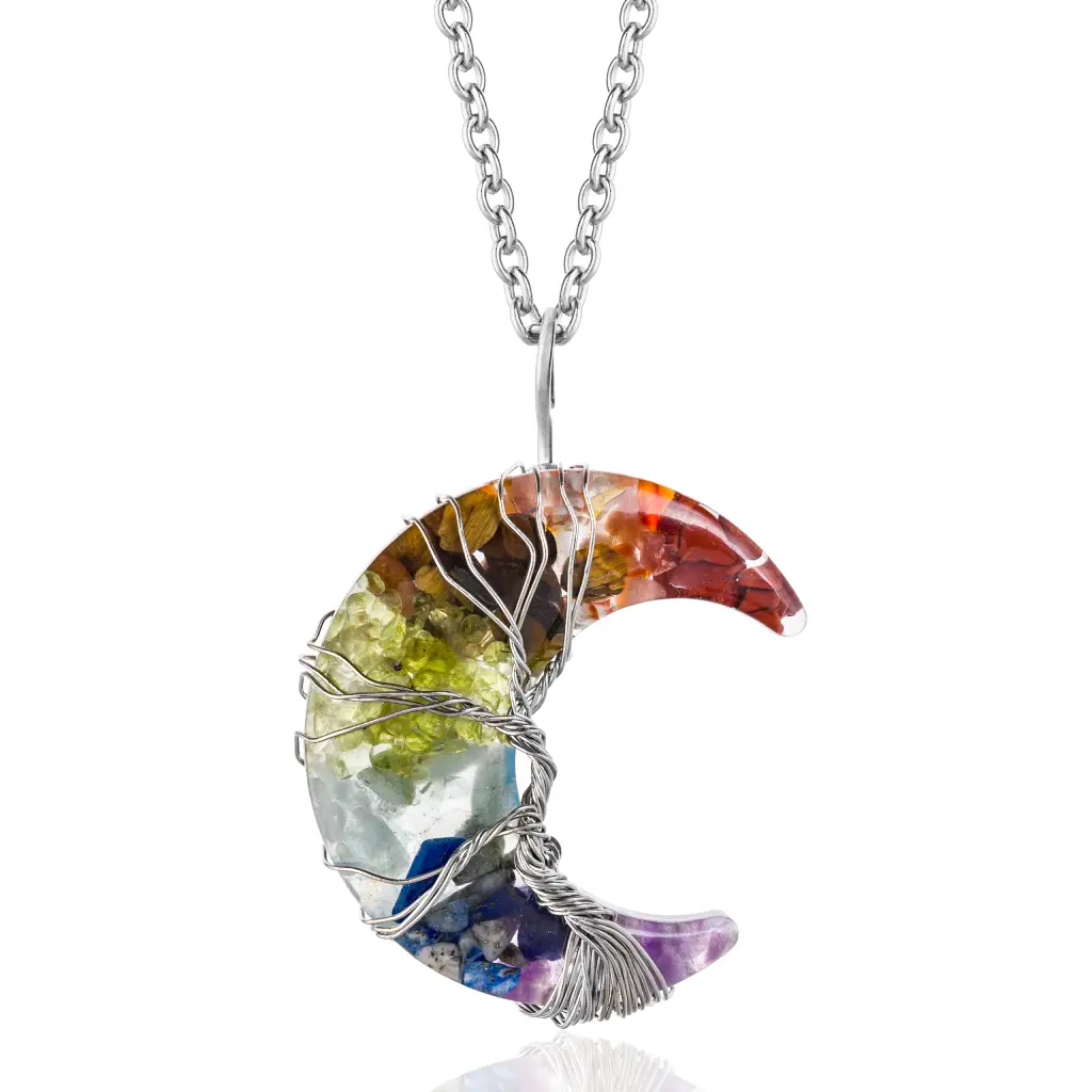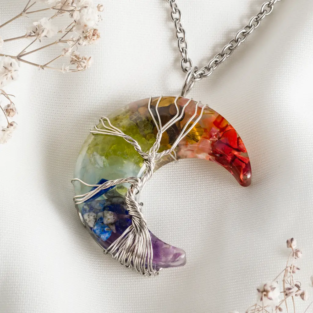 Naszyjnik Półksiężyc 7 Czakr w Żywicy